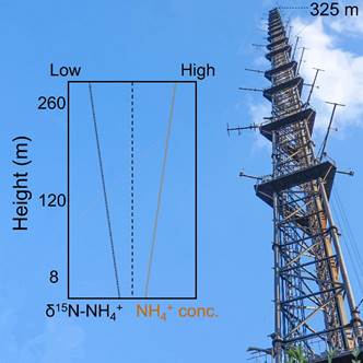 Prof. Pingqing Fu’s group in Tianjin University collaborated with researchers fromChinese Academy of Sciences and Hong Kong Polytechnic University and together they investigated the concentrations and δ15N values of NH4+in PM2.5at three heights (8 meters, 120 meters and 260 meters) in a 325-meter-high tower in urban Beijing in 2015.