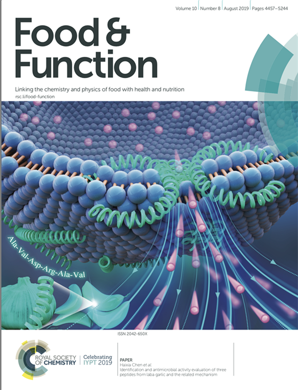 Recently, a research team led by Professor Haixia Chen from Tianjin University has made a great discovery in the identification and the related mechanism of natural antimicrobial peptides, andpublished an article entitled "Identification and antimicrobial activity evaluation of three peptides from Laba garlic and the related mechanism" as the cover paper in“Food & Function”, an international scientific journal of the Royal Society of Chemistry (JCR1, Top).