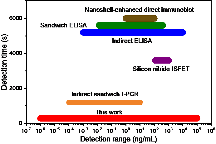 What's more, this method directly uses unpretreated sputum to detect and achieves a better distinction between healthy people and TB patients, which greatly shortens the TB detection time (considering the dilution of sputum, only 2-5 min) . Compared with other methods, the SiNW-FET biosensor can detect MTB in a wider concentration range in a shorter time. This technology provides a new idea and method for rapid screening of TB patients.