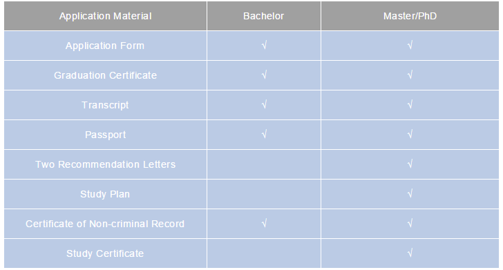 Be a high school degree holder under the age of 30 when applying for the bachelor’s programs; Be a Bachelor degree holder under the age of 35 when applying for the Master’s programs; Be a Master degree holder under the age of 40 when applying for the PhD programs.