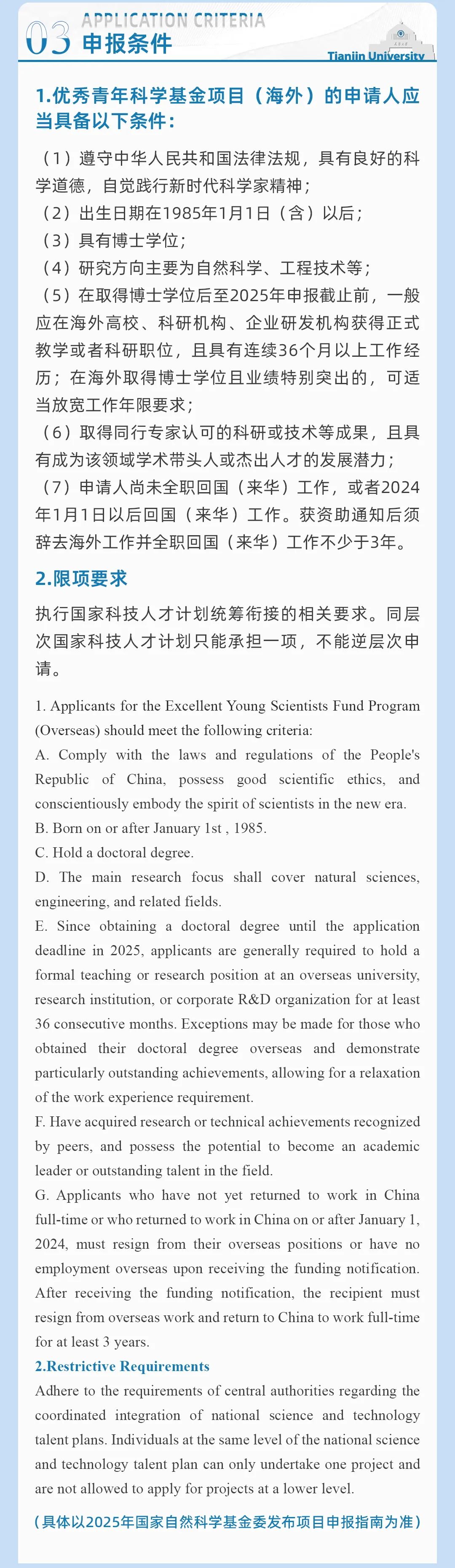 Tianjin University will hold an orientation on 2025 Excellent Young Scientists Fund Program (Overseas) on March 1.