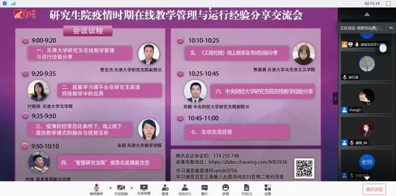 On June 4, at the invitation of Chaoxing Group, the Graduate School of Tianjin University together with Chaoxing Group held an online meeting to share online teaching management and operation experience during the COVID-19 epidemic period and discuss a new online teaching mode of the graduate course in the future.Representatives of the graduate schools of the universities in North China attende...