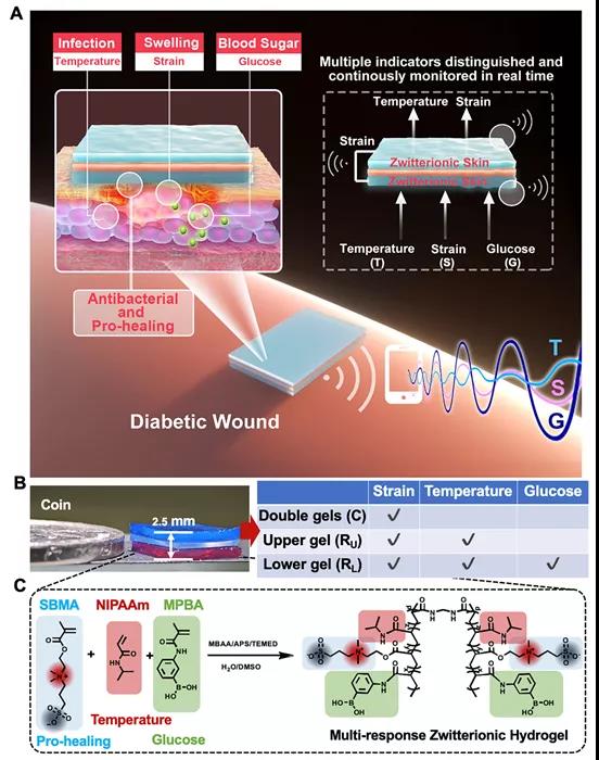 Biomimetic skin-like materials—including electronic and ionic skins—can distinctively perceive multi-stimuli—such as strain, temperature, liquid flow and so on. Currently, multi-stimuli response in a single sensing unit is a highly desirable goal, but its accompaniment of serious interference among signals is difficult to avoid. To address this, a zwitterionic skin-like sensor system that ca...