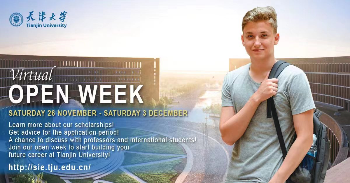 TJU International Virtual Open Week 2023 will start soon from November 26 to December 3. Professors from 14 schools including Chemical Engineering, Civil Engineering, Pharmaceutical Science, Architecture, Intelligence and Computing and more will give a series of online information sessions.It is a perfect way to start building your future career at Tianjin University by joining the virtual open...