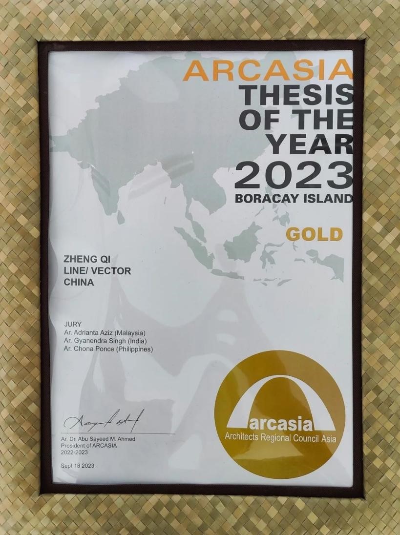 On September 18, the award ceremony of the 2023 ARCASIA Student Thesis (Graduation Design) Competition was held in Boracay, Philippines. Among the four finalists, the graduation design "LINE/VECTOR" (student: Zheng Qi; instructors: Zou Ying and Xin Shanchao) of Tianjin University’s School of Architecture was awarded the only gold award of the competition.The ARCASIA Annual Dissertation (Gradua...