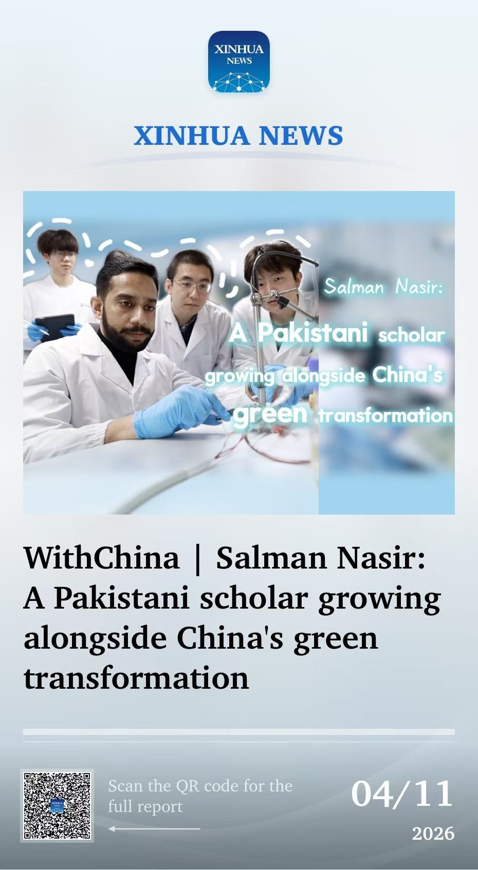 For Pakistani researcher Muhammad Salman Nasir, weekdays begin with a routine that reflects China's shifting energy landscape: driving a China-made plug-in hybrid electric vehicle to take his son, a second-grader, to school."New energy vehicles are everywhere in China. They are not only low-carbon and environmentally friendly but also very convenient for travel," said Nasir, 37.Nasir, an associate ...