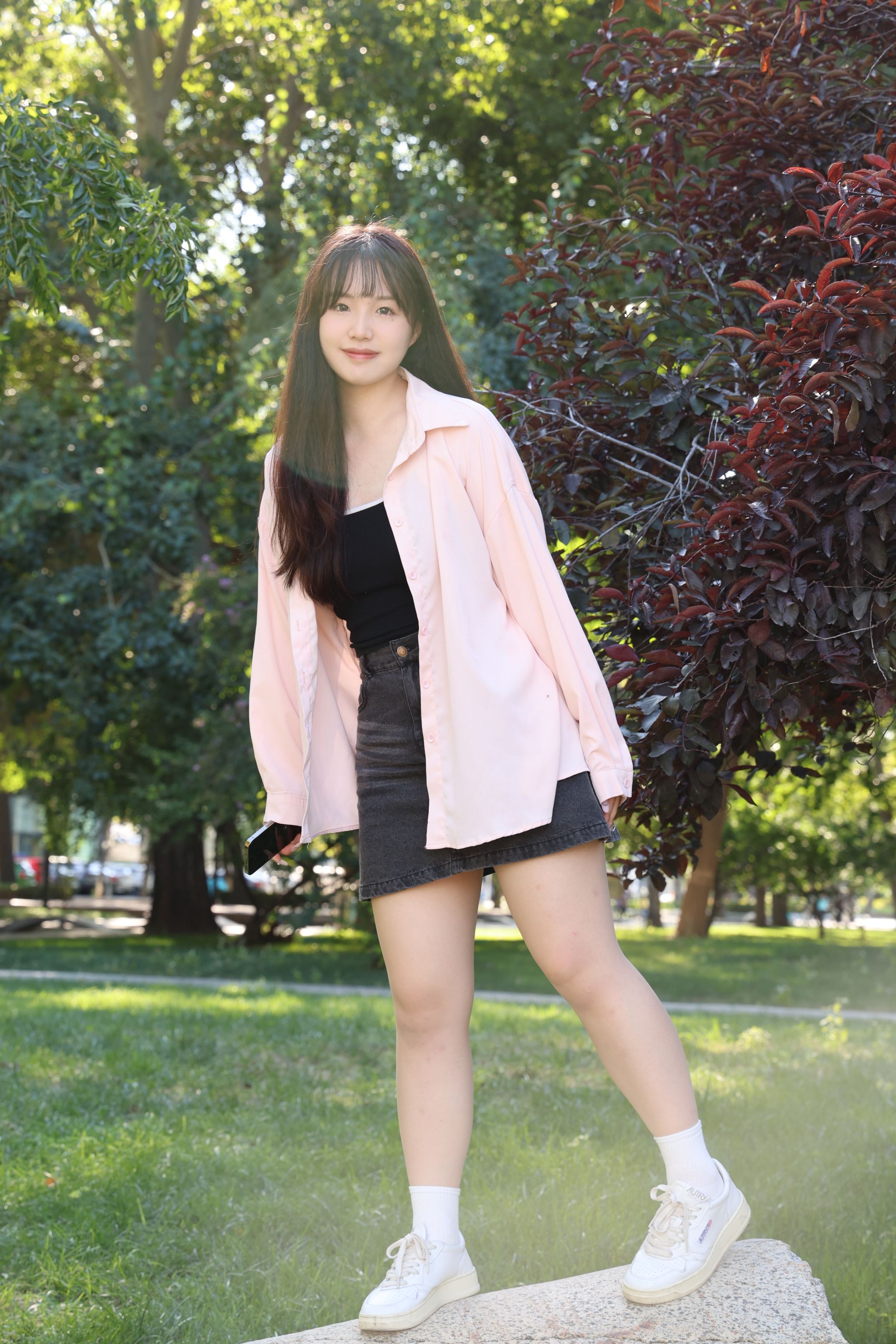In her free time, Kim enjoys working out at the gym, particularly strength training. “I think it’s cool for girls to have muscles,” she says proudly, flexing her arm with a laugh.