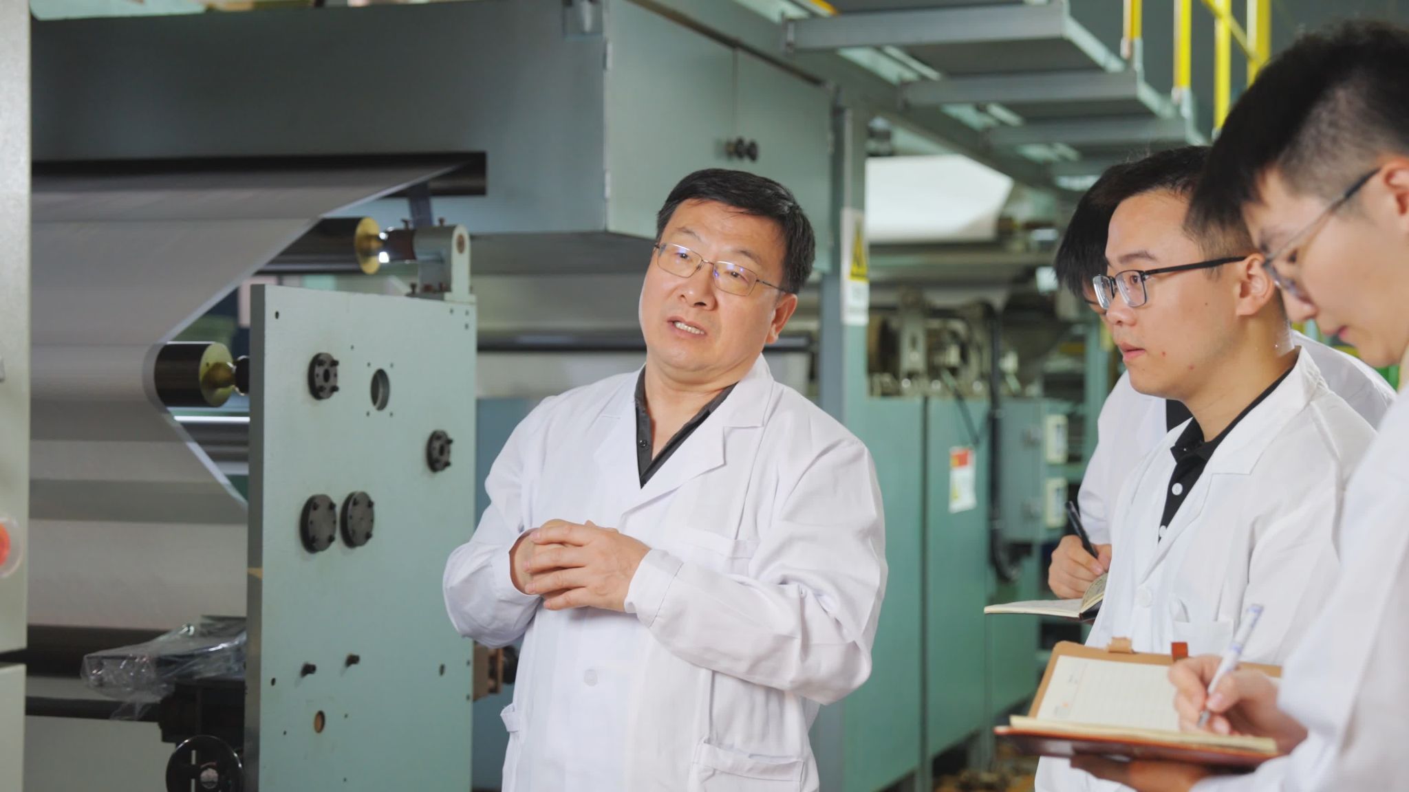 Building on the laboratory breakthrough, Professor Wang’s team also worked with industry partners to carry out industrial-scale validation and establish a viable route from laboratory research to factory production. Using a self-designed industrial roll-to-roll blade-coating line, the team achieved continuous and stable manufacturing of 1-meter-wide MOF-based pressure-resistant mixed-matrix composite membranes for carbon dioxide separation.