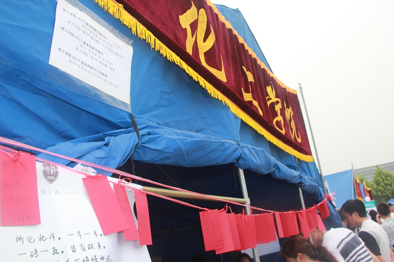 At the Peiyang Park Campus, the School of Chemical Engineering and Technology decorated their Welcome Tent with red notes for new students to write their wishes. “Be a TJU-er living up to my own expectation”, was Ma Junyi's wish, a freshman from the School, her face showing a big smile when she tied her wish-card on to red rope.