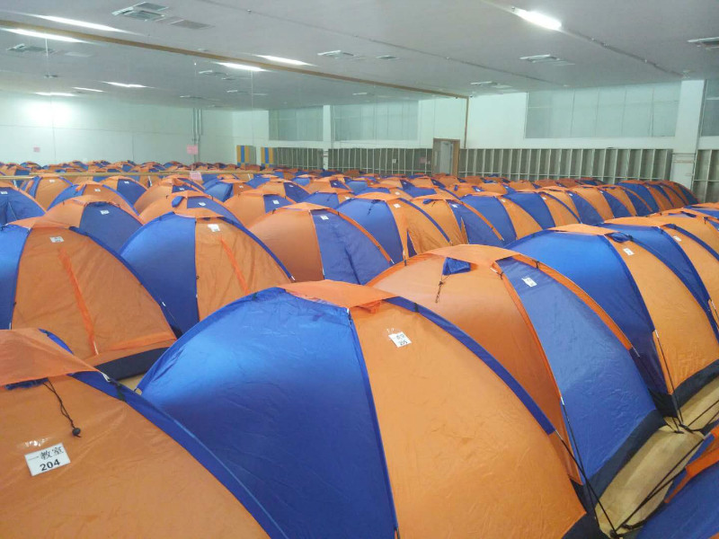 On September 5, on the first day of admission, TJU provided free tents for parents and has done so for the past 7 years. As usual there were a great number of colorful tents for first year’ s parents pitched in the gym of Peiyangyuan Campus at Tianjin University.