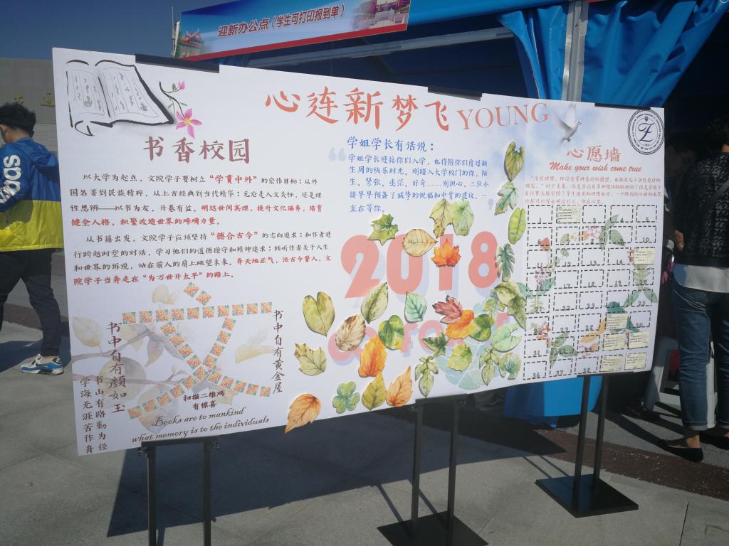 Among the welcoming activities from School of Foreign Languages and Literature, the most special one was a Chinese character “文”, which consisted by forty dimensional barcodes. New arrivals will receive a list of good books that were recommended by seniors through scanning it. “Even though there are four years in university, the time for study is limited. Never count on tomorrow because every day will bring new tasks. Developing a good habit of acting immediately will help you a lot.” These words from seniors gave new students warm reassurance. Some first years left their expectations at the wishing wall with well-designed cards. A new student, Zhang Tong, from the School of Foreign Languages and Literature said, “University is a new start for me. I hope I can still be confident and optimistic. I will persist with my original intentions and move on.” These simple words expressed her firmness of attitude.