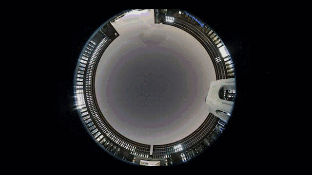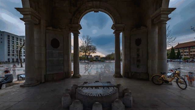 By setting up the camera in the middle of the circular square and using a circular fisheye lens, Tang was able to capture the changes of the light from 3 am to 7 am. The Beiyangyuan campus is most beautiful when the sun rises with the star-studded sky gradually turning brighter and brighter.