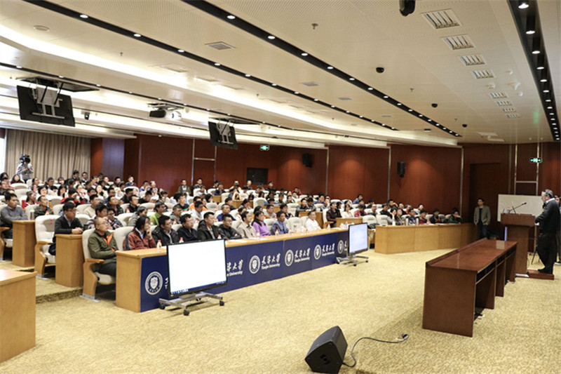 On March 21, 2018, the conference hall of the administration building of Peiyangyuan Campus was crowded with students and enthusiastic applause. Zhang Weiping, an academician of the Chinese Academy of Science, Professor of Shiing-Shen Chern Institute of mathematics of Nankai University and Deputy-director of the Center for Applied Mathematics of Tianjin University, delivered an academic lecture entitled ‘From Triangles to Manifolds’ to the students and teachers of the School of Mathematics. It was also the second class of the mathematic lecture series given by the School of Mathematics at Peiyangyuan Campus. The lecture was presided over by Sun Xiaotao, Dean of the School of Mathematics.
