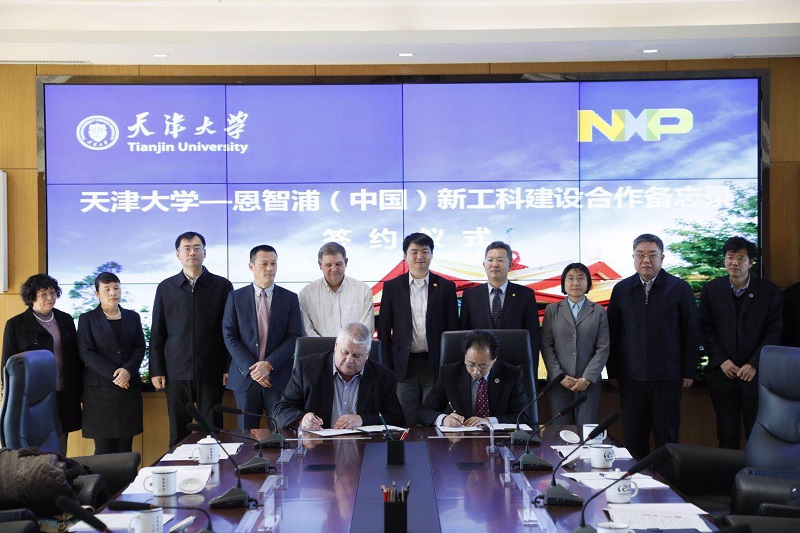 On December 11, 2017, the signing ceremony of the "Tianjin University–NXP Memorandum of Understanding (MoU) on Innovative Engineering Education (3E) Cooperation" was held at Tianjin University (TJU). Wang Shuxin, TJU’s Vice President, on behalf of the University, signed the agreement with Mr. Geoff Lees, Senior Vice President of NXP Semiconductors, and Mr. Zheng Li, President of NXP Greater China. Three government representatives including Li Ning, Deputy Director of the Personnel Exchange Center of the Ministry of Industry and Information Technology (MIITPEC) of Tianjin, witnessed the ceremony.