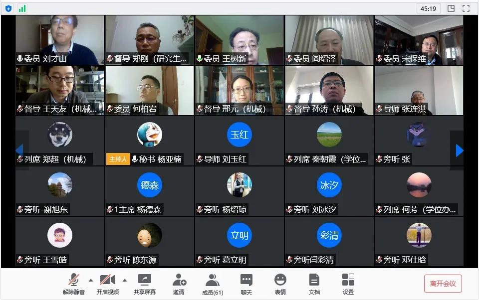 Dr. Yang reported on his research work, especially the innovative part of his dissertation and answered the questions raised by the committee. Then, the defense committee were left alone in the online meeting to discuss the resolution of the defense. To ensure a fair and impartial voting, a professional online questionnaire survey platform named Wenjuanxing was used to collect the ballots of the committee members. By full votes, the committee agreed that Dr. Yang successfully defended his dissertation and was qualified to receive a doctor degree in engineering.