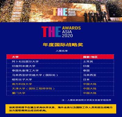 On June 3, 2020, Tianjin International Engineering Institute (TIEI) was nominated for the“International Strategy of the Year”as Times Higher Education (THE) announced the shortlist for the 2020 Times Higher Education Awards Asia.