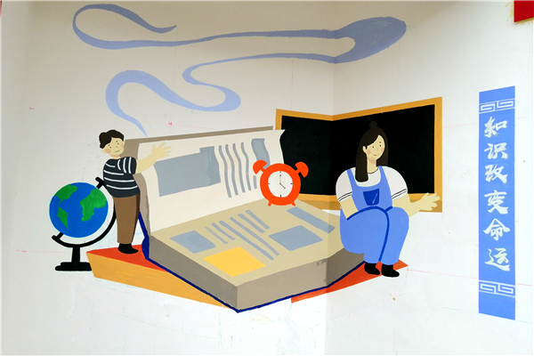 For two weeks, Tianjin University “Tan Meng” team, a team from the College of Intelligence and Computing assisting impoverished people in Tanchang County, Gansu province, have painted an entire 430 square meters of walls with beautiful paintings for this county town with their expertise.