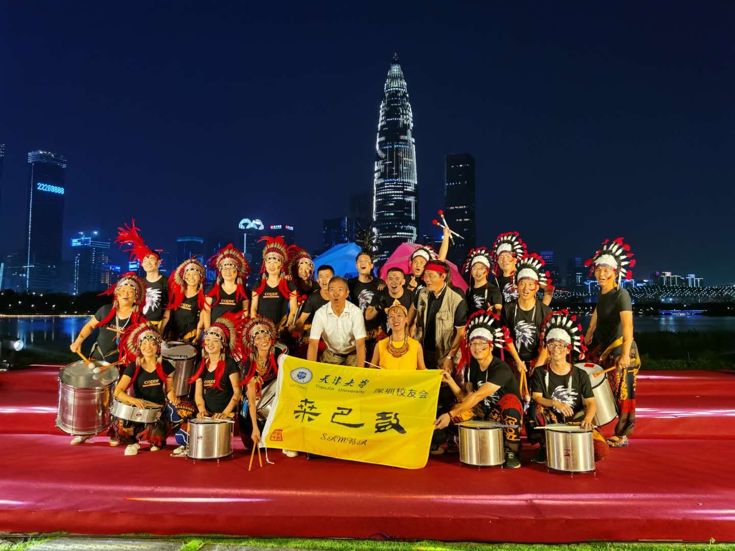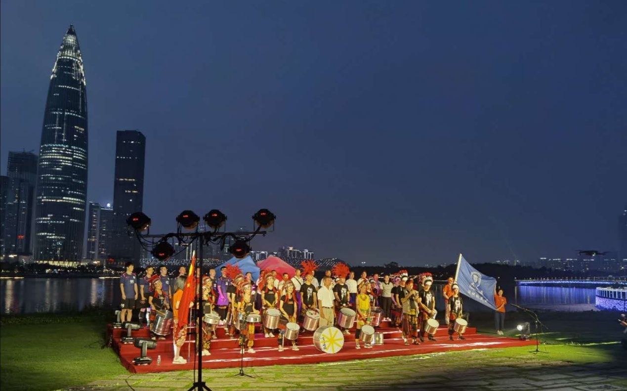 Under the light show of "Tianjin University 125th Anniversary" on Shenzhen Bay Chunsun Building, Zhang Huanong, president of Tianjin University’s Shenzhen Alumni Association, led all the participants to sing the Chinese national anthem and Tianjin University anthem and cheered "Happy Birthday to Tianjin University!" At the same time, a fluorescent board typed "Happy Birthday" was raised. After President Zhang hammered on the drum, all the drums were beating with passionate Samba dance and the subtitles of "Tianjin University 125th Anniversary" rose on the Chunsun Building, shining brightly on the banks of Shenzhen Bay. At this moment, amid the light and heavy traffic on the street, visitors in the Talent Park watched and applauded the performance.