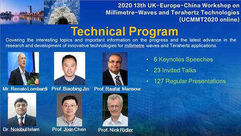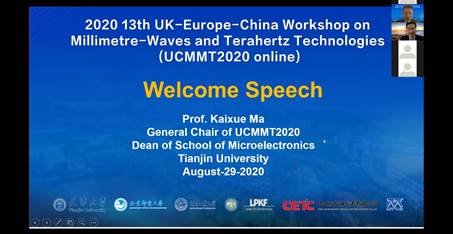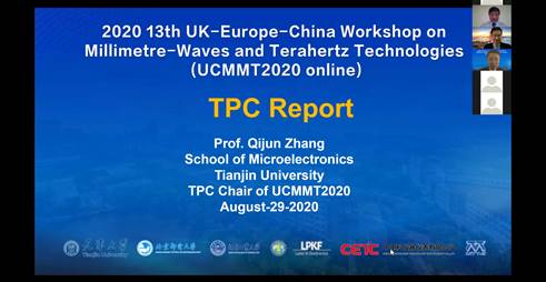 The 13th UK-Europe-China Workshop on Millimetre-Waves and Terahertz Technologies (UCMMT2020) was successfully held online from August 29 to 31, 2020.The workshop was sponsored by Tianjin University’s School of Microelectronics and co-organized by Beijing University of Posts and Telecommunications, Xi'an Branch of China Academy of Space Technology (National Key Laboratory of Space Microwave Science and Technology), and Hebei University of Technology. More than 200 people attended the workshop, including well-known experts, young scholars, student representatives from domestic and foreign universities, and representatives of well-known companies at home and abroad.