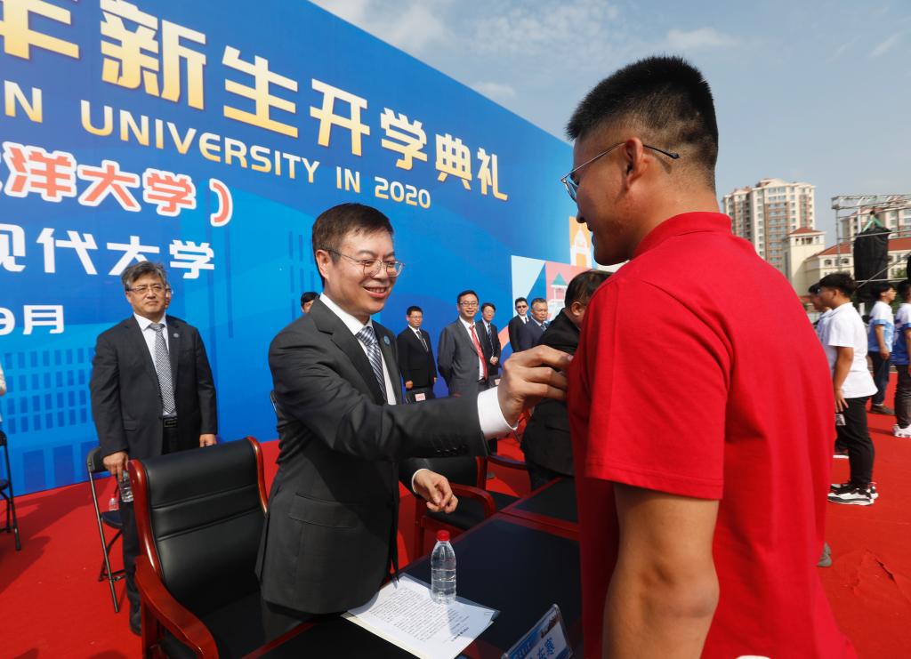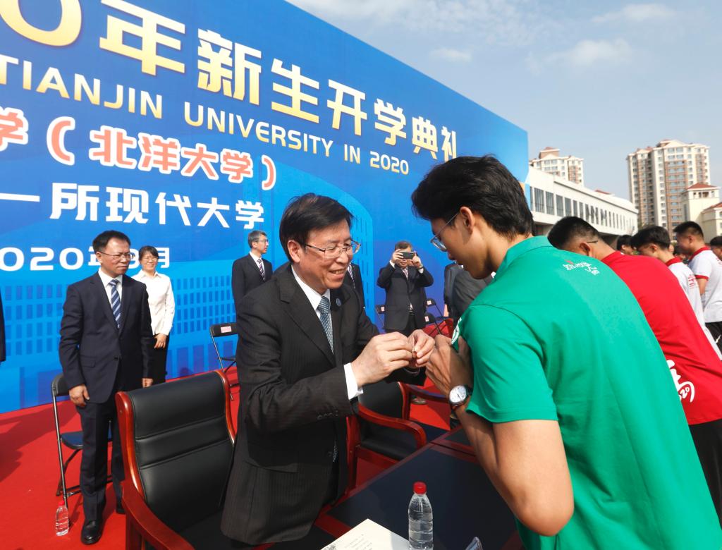 On the morning of September 12th, Tianjin University's Welcoming Ceremony on Peiyang Park Campus was held at the North Stadium, Peiyangyuan Campus. Tianjin University (TJU) Party Secretary Li Jiajun, President Jin Donghan, and other leaders and representatives of teachers attended the ceremony to welcome more than 5,000 newly admitted undergraduates and postgraduates from various schools on Peiyang Park Campus.
