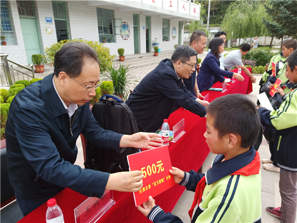 On September 3, Tianjin University launched the “Million Yuan Grant Project” at Jinmu School for nine-year compulsory education in Tanchang County, Gansu Province. To support the county, one million yuan have been raised by Tianjin University with the help of its alumni and the public to support financially about 1000 teachers and students covering four disadvantaged groups including teachers in difficulty, substitute teachers, impoverished students, and orphans and disabled students. Besides, supplies including new bags, stationery, and Kindle Reader are also offered.