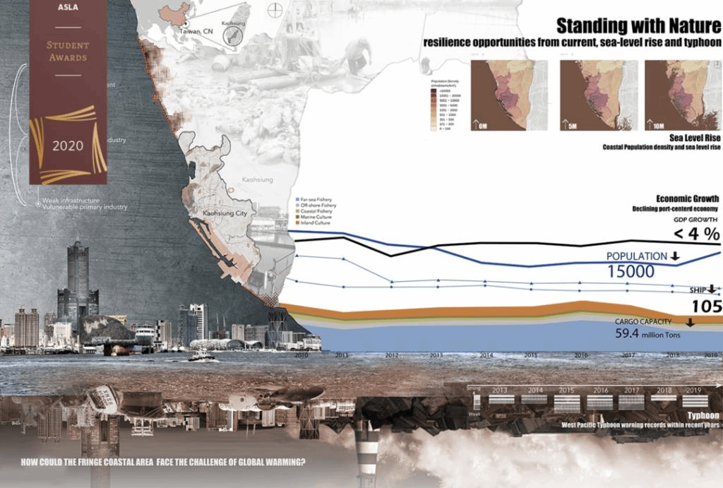 On September 4, 2020, local time in the U.S.A, the American Society of Landscape Architect (ASLA) announced the winning entries of the 2020 Student Awards.“Standing with Nature: resilience opportunities from current, sea-level rise and typhoon” by students from Tianjin University’s School of Architecture won the Honor Award for Analysis and Planning Category. This is the highest award ever won by landscape architecture students in international competitions at Tianjin University.