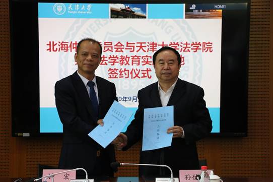 On September 16,2020, Tianjin University Law School and Beihai Arbitration Commission signed a cooperation agreement to construct a legal educational practice base at the Commission.