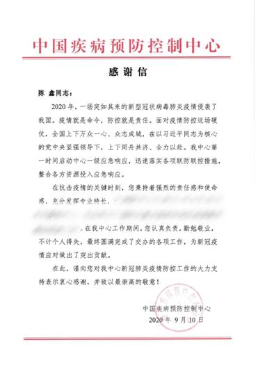 On Teachers’ Day this year, Dr. Chen Xin who works at the Center for Applied Mathematics of the School of Mathematics, received a special gift—a letter of acknowledgement from the Chinese Center for Disease Control and Prevention. The letter highly praised Chen’s responsibility and work in fighting against COVID-19 pandemic, especially his outstanding contribution to the accurate prediction work of the epidemic development in China with his professional expertise, diligence and dedication.