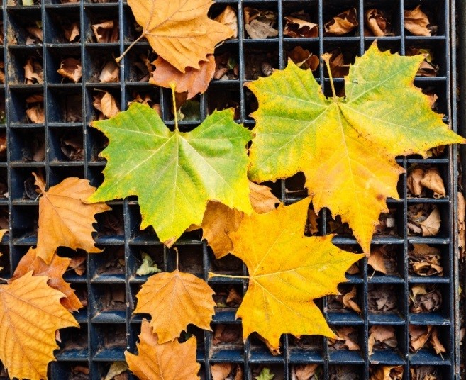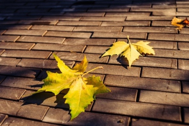 Fallen leaves scattered on the ground as if the steps of autumn.