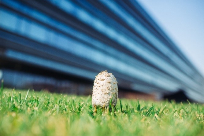 A new life sprouts on the grass in front of Zhengdong library on Peiyangyuan Campus.