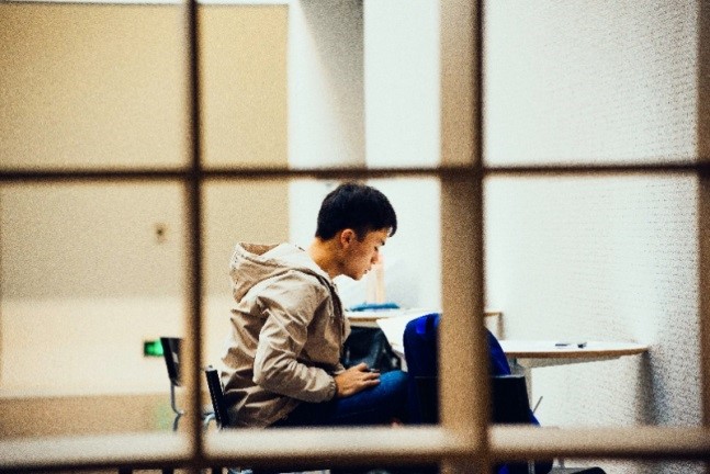 A student is absorbed in reading accompanied by the last green hints of summer.