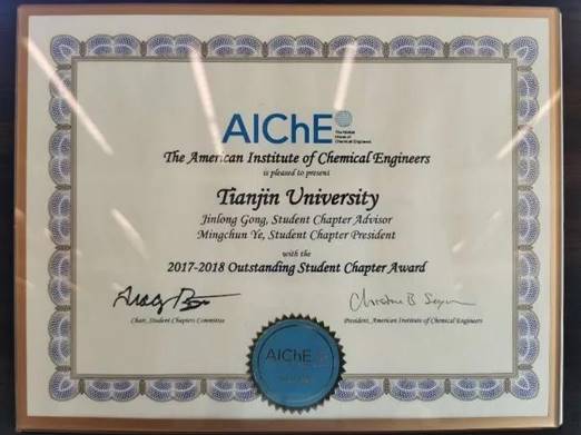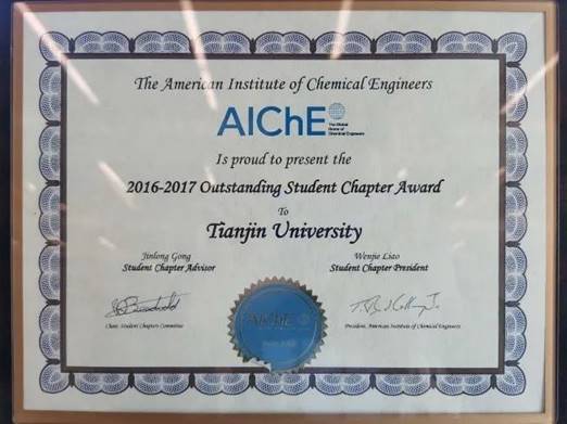 Tianjin University Student Chapter of AIChE was established in August 2016. It is a member of the International Student Chapter of the American Institute of Chemical Engineers and one of the first Student Chapters established in China. Professor Gong Jinlong from the School of Chemical Engineering and Technology, also the Vice President of Tianjin University, serves as the Chapter instructor.