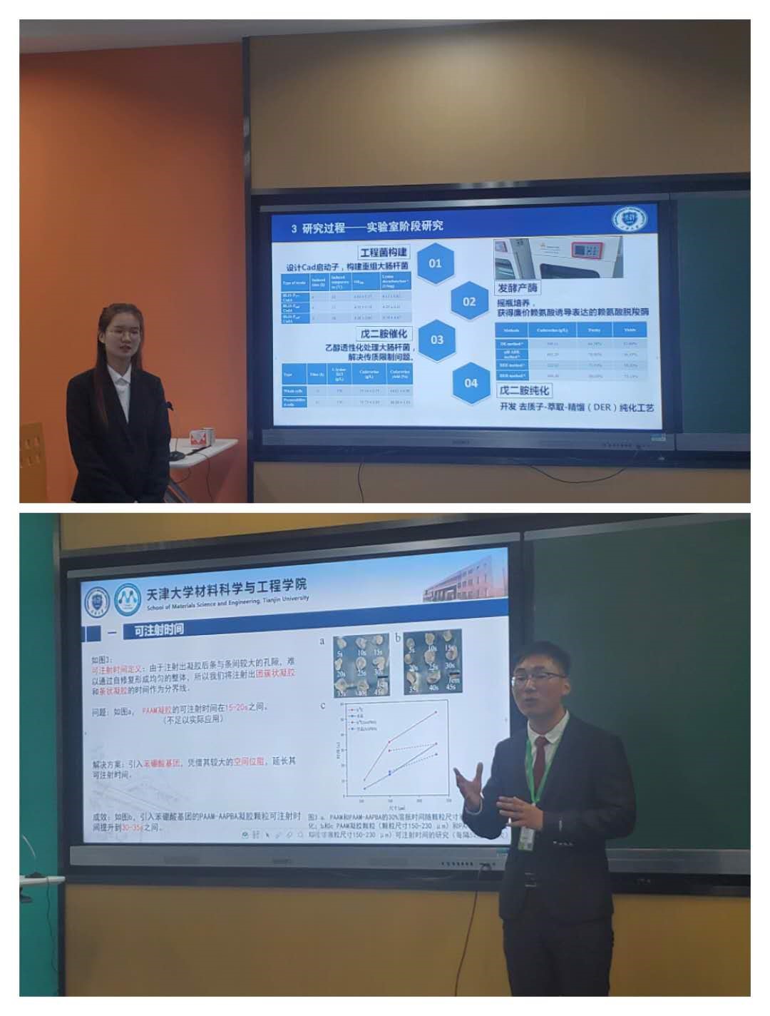 Five projects from Tianjin University got awarded, ranking first among universities in Tianjin and fourth in China. Among them, "A Study on the High Yield of Pentamethylene Diamine by Biological Method of Recombinant Escherichia coli", the project of School of Chemical Engineering and Technology, and "a Study on the Construction of Injectable High-strength Hydrogel through Microgel Self-repair", the project of College of Materials Science and Engineering, were presented as academic papers. The project leaders Zheng Yunxin and Ma Zhenyu conducted academic exchanges on behalf of their teams.