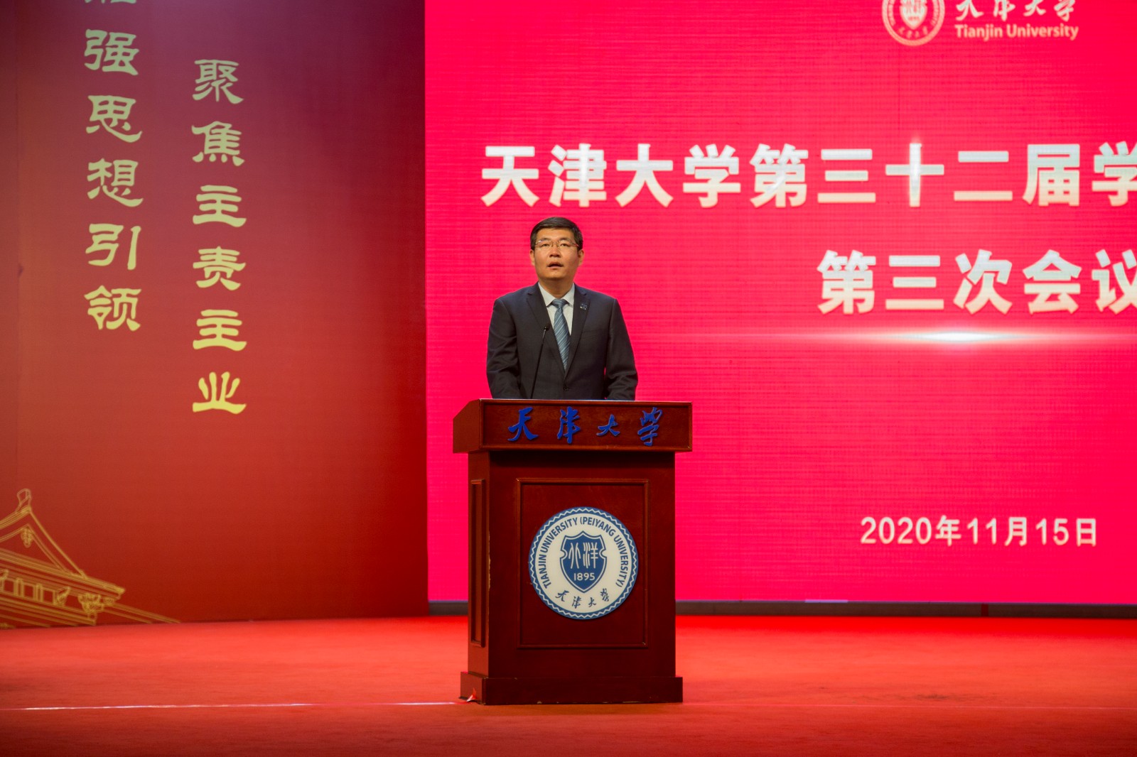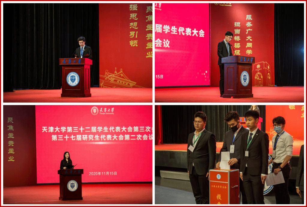 On November 15th, Tianjin University (TJU) held an opening ceremony for its third session of the 32th Student Representative Conference, and the second session of the 37th Graduate Student Representative conference in Qiushi Hall.