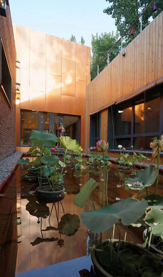 The central water courtyard delivers cool winds to the residential modules on the north side in summer.