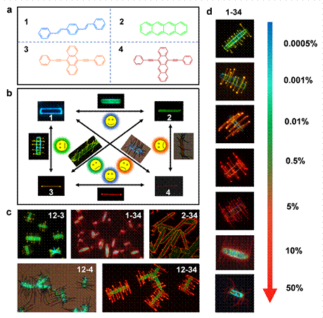 Based on the phase behavior of the binary mixture, the components used to form the alloy can be regarded as fully compatible, while the components used to construct the heterogeneic structure of the ordered orientation can be regarded as partial compatible. In addition, the parts used to construct disordered heterogeneity knots are considered weakly compatible. The compatibleness of binary components is determined by the molecular shape, size and symmetry between the two components. To achieve this, the team cleverly selected four conjugate components of diphenyl benzene, diphenyls , 9,10-diphenyls and 5,12-diphenyls as model compounds for the first time to construct a microparticle library of arbitrary combinations of four components.