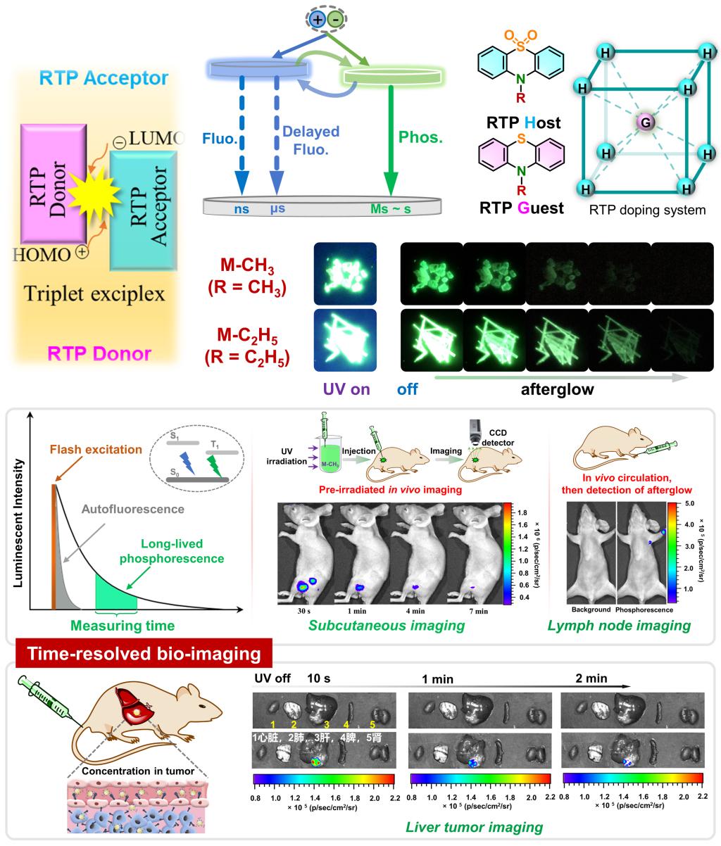 The organic room-temperature phosphorescent material developed in this research is more like a rechargeable mobile phone, which can maintain luminescence for several minutes after one single excitation. Therefore, after injecting the excited material into the living body, researchers were able to “communicate” with it about its position and intensity by capturing its luminescence. The position and intensity information of these materials can usually reflect the internal and external microenvironment status of the tissues and by further processing and identifying the information, the physiological conditions of these tissues can be evaluated, thereby helping doctors make early diagnosis of diseases.