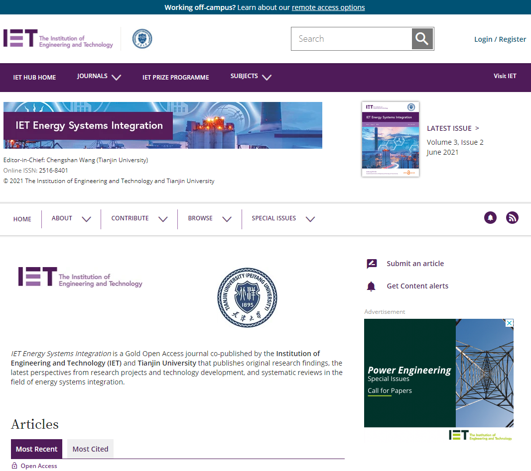 As a Gold Open Access journal jointly published by TJU, IET and Wiley, IET-ESI publishes original research findings, the latest perspectives from research projects and technology development, and systematic reviews in the field of energy systems integration.