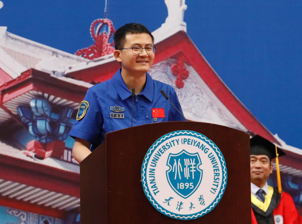 Yin Xiangyuan of Class 2007 from the School of Mechanical Engineering was invited to speak on behalf of alumni. He is now the Deputy Director of the Technical Office of Xichang Satellite Launch Center and the No. 1 commander of launch test station. He shared with the graduates how he held onto his original aspirations and worked step by step to realize his space exploration dream.