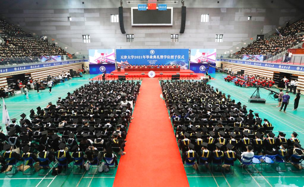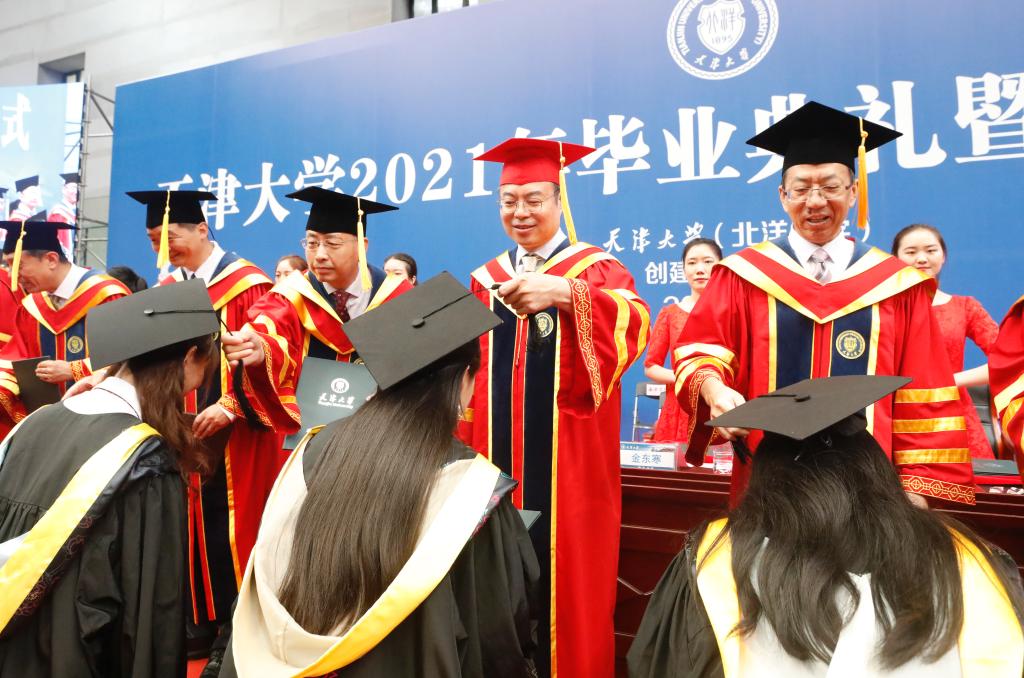 On July 6, 4,773 undergraduates at Tianjin University greeted one of the most important moments of their life and received their bachelor’s degree. “We have graduated!” With the shouts, many caps were thrown into the air, and the happy laughter and joyful music reverberated in the sports stadium on the university’s Weijin Road campus where the commencement ceremony for undergraduates of Class 2021 were held.