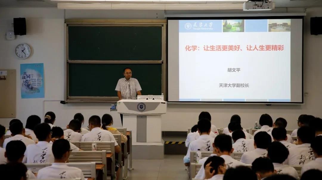 Professor Hu Wenping, vice-president of Tianjin University urged the freshmen at the School of Science to explore into the world of chemistry during their first collegiate class on August 27.