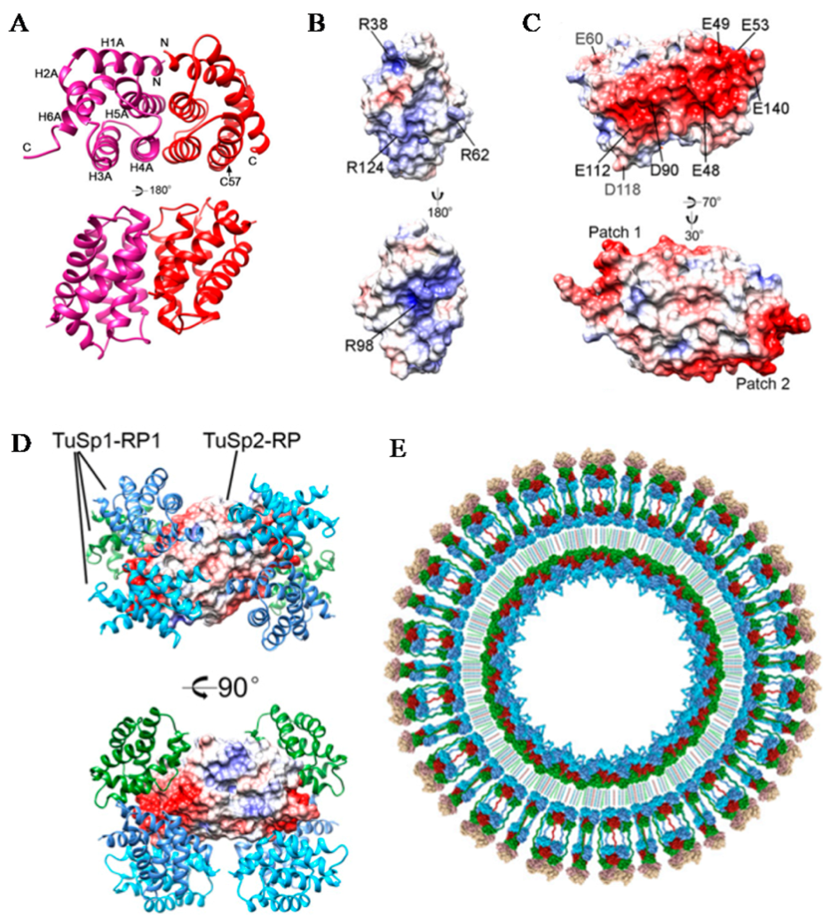 Fig.1. The structural basis and micelle model of the interaction between TuSp2-RP and TuSp1-RP