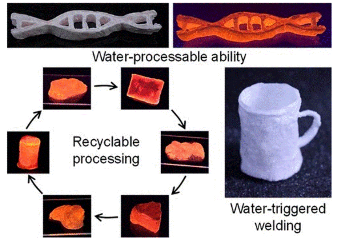Based on this fact, Prof. Yang's team develops a new method to process DNA bioplastic at a low temperature, producing a new type of DNA bioplastic that is compatible with the environment in the process of production, use and recycling. The raw materials for this bioplastic include native DNA and ionomer, both of which come from biological renewables. Compared with petroleum-based plastic which is processed through fusion, the energy consumption of processing this DNA plastic is less than five percent. In addition, this novel bioplastic can be fully recycled to produce new plastic products, and its controlled degradation can be realized through the enzyme action of DNA.