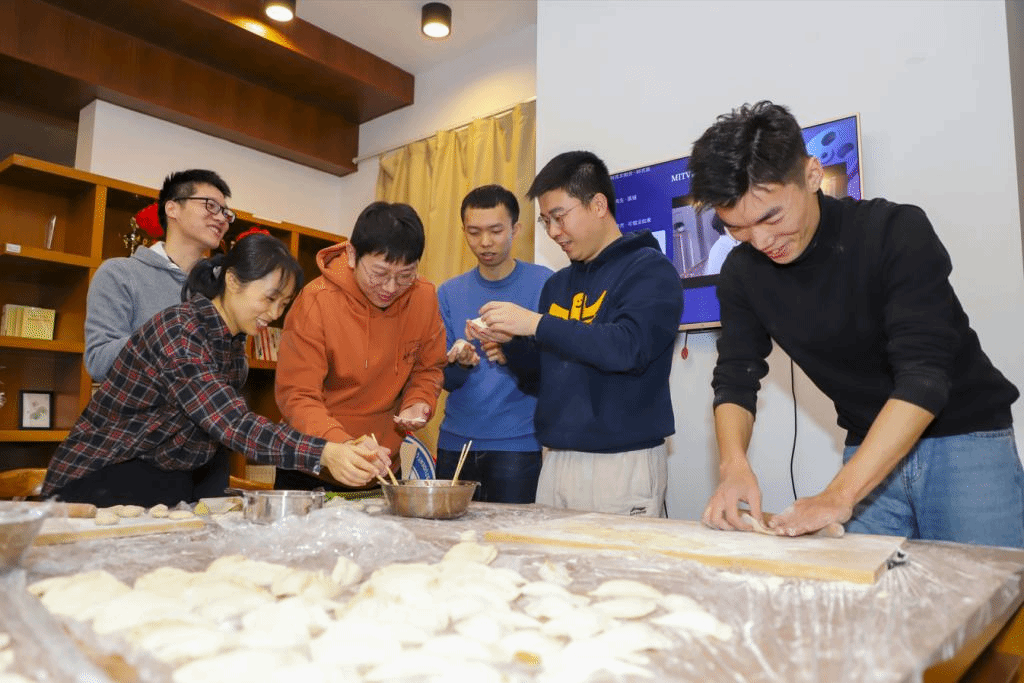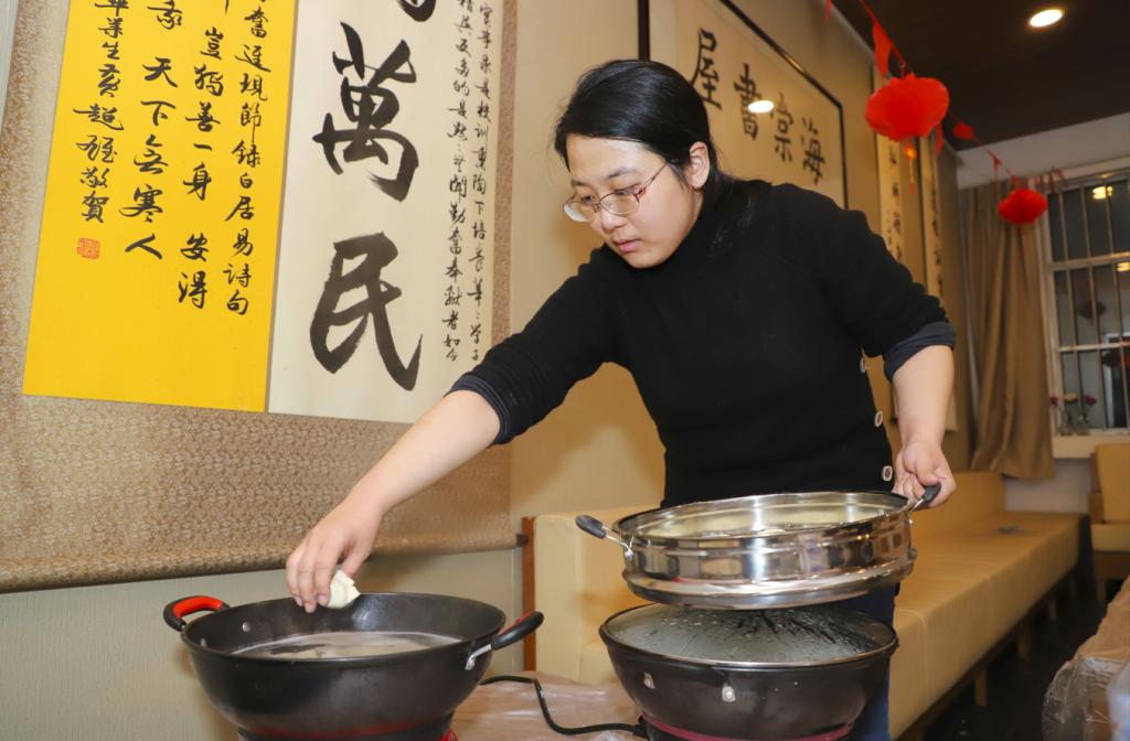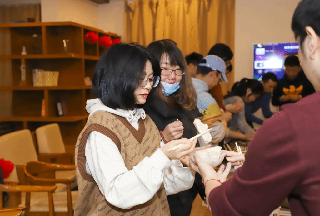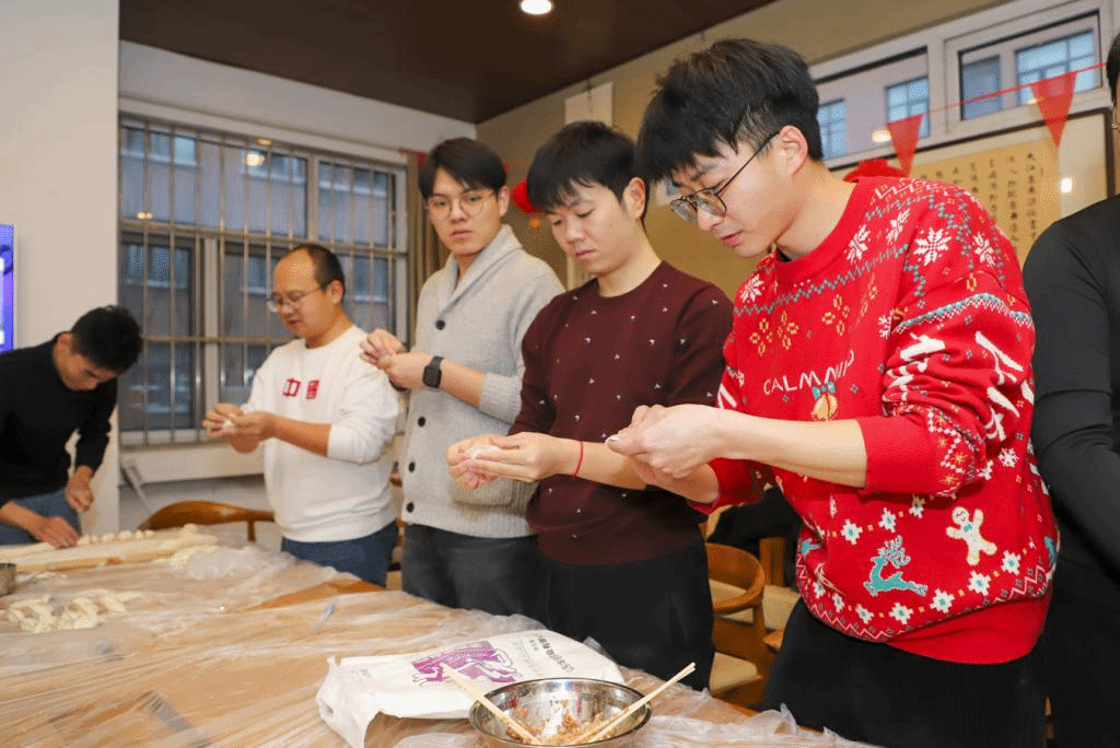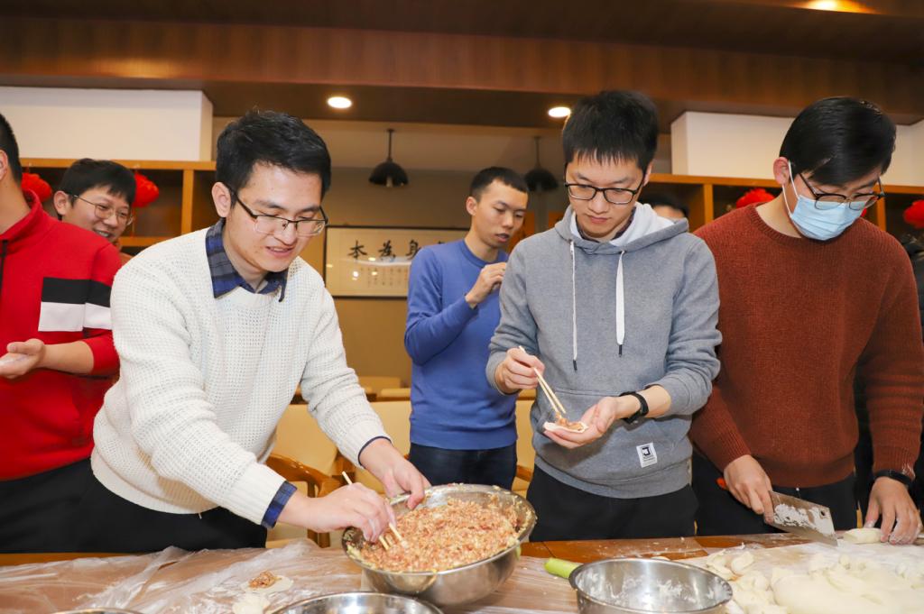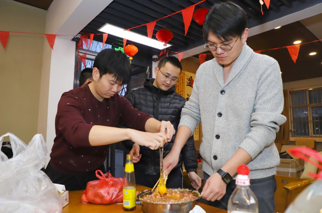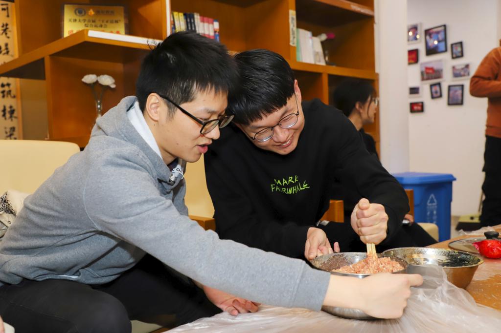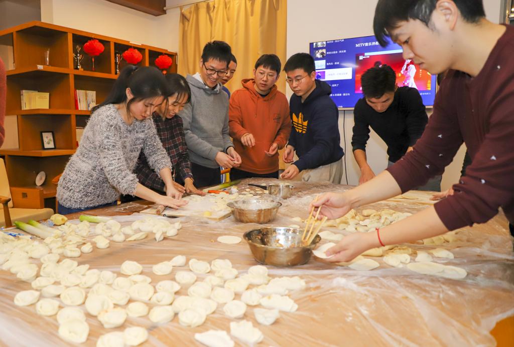 Students in Tianjin University made dumplings during the Little New Year.