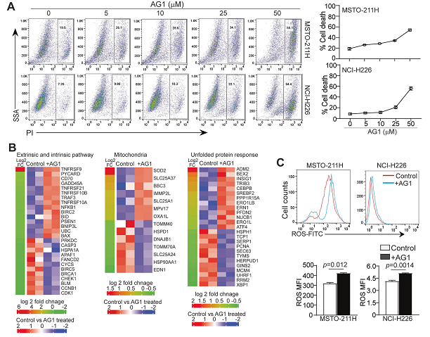 Fig. 2 G6PD increases ROS production to regulate ROS-regulated cell death pathway to promote human mesothelioma cell death in vitro.