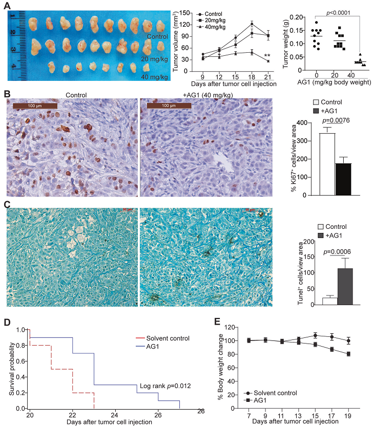 Fig. 3 Pharmacological activation of G6PD enzymatic activity suppresses human mesothelioma growth in vivo.