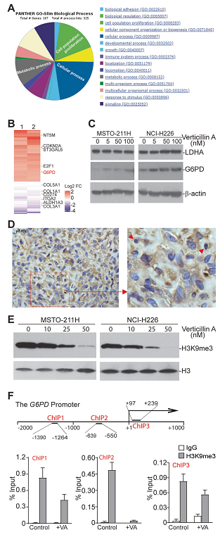 Fig. 1 G6PD is repressed by its promoter H3K9me3 deposition in human mesothelioma cells.