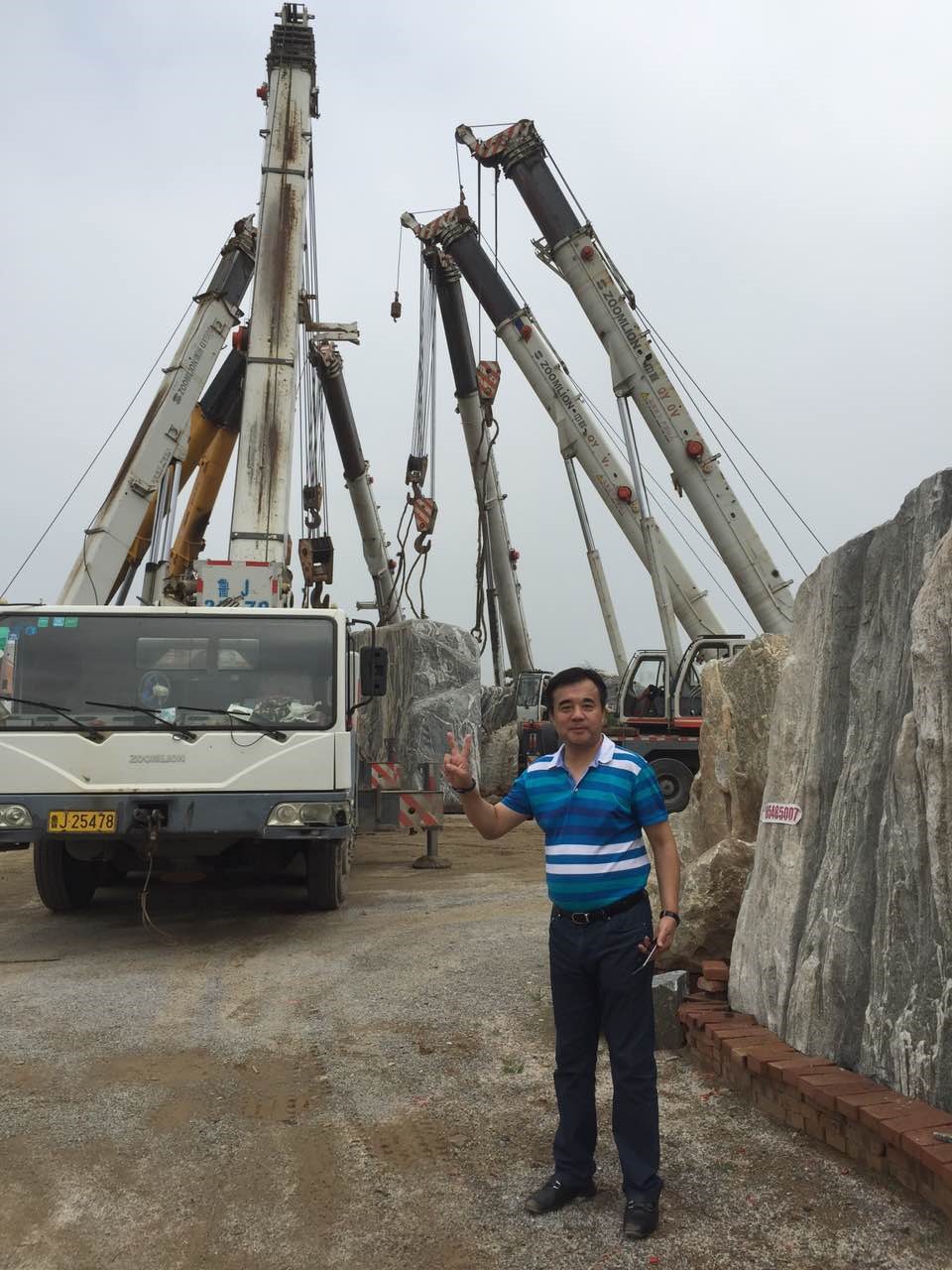 Alumnus Wang Zheng coordinates the transportation of the motto stone.