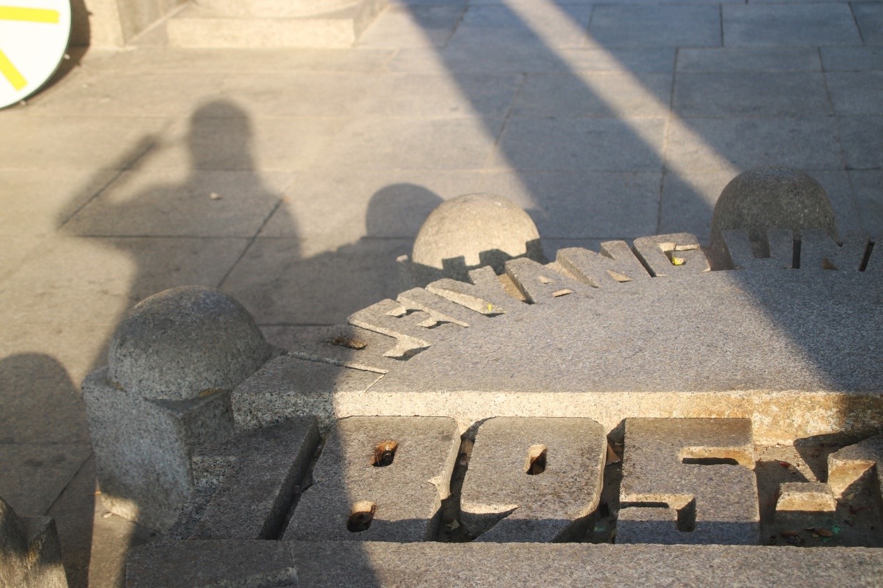 The photo was taken in Peiyang Square of Tianjin University. This is a group photo of my shadow and the school history monument when I entered the school. Light skillfully connected me with the campus history.