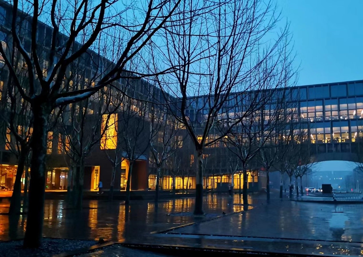 The photo was taken in front of the Zheng Dong Library, in autumn last year. Orange lights from the library adds vitality to the chilly early fall as well as the bare branches through emphasizing the color comparison between cold and warm.